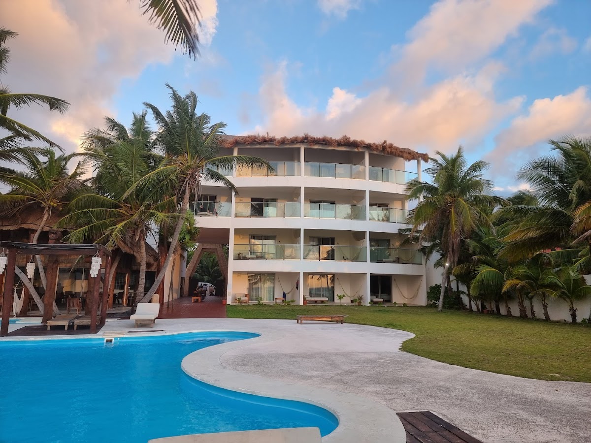 We stayed here for 4 nights and had a fabulous experience! The room was large, comfortable, and clean. The balcony was huge and had a hammock and chair for hanging out on. (Ask to be on the third or fourth floor for great views!) The pool is steps away from the ocean and was never overcrowded. The beach is not great for lounging as it is small and there is a lot of seaweed, but since the pool was right there that didn't bother us. The food is great. The menu is limited but it is easy to get into Puerto Morelos where there are many bars and restaurants (and a really nice grocery store for other necessities). We chose to bike to town (about 30min) as the hour walk on the beach was too hot and the taxis were not cheap (300 pesos one way). The staff at the hotel is so kind and helpful. And the cost is super reasonable! For us, it was a great alternative to staying all-inclusive because we used the money we saved on hotel cost to have fun exploring the town. We would 100% stay here again.